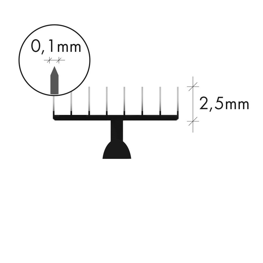 - 8 agulhas de 0,1mm de espessura e 2mm de comprimento;