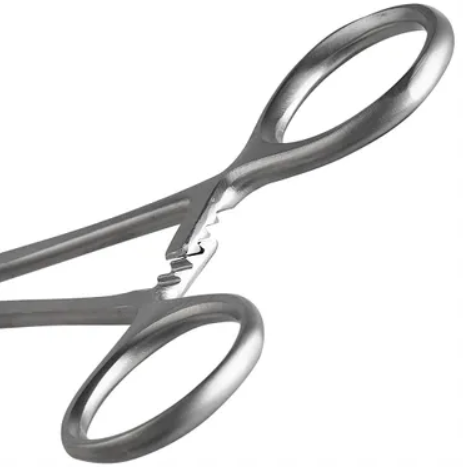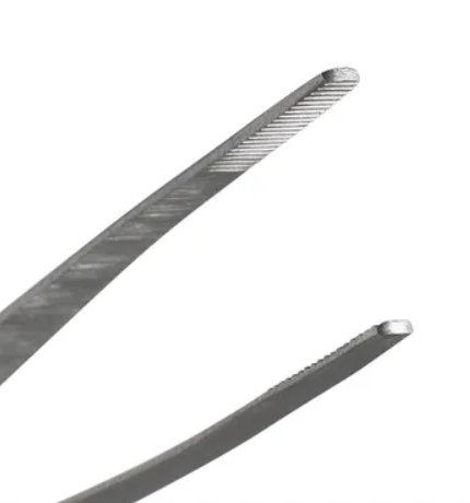 • 1 pinça dente-de-rato, fabricada em liga metálica, com 140 mm de comprimento, com dentes de 3mm sobrepostos em sua porção distal;