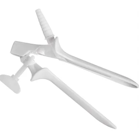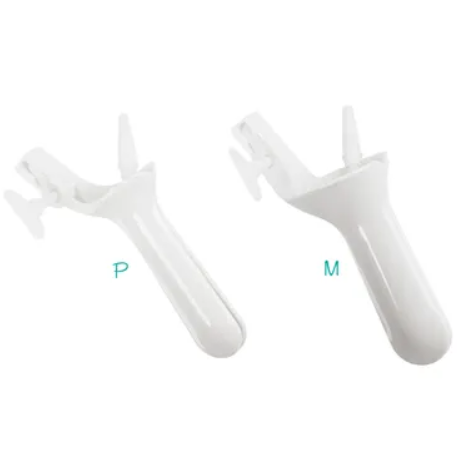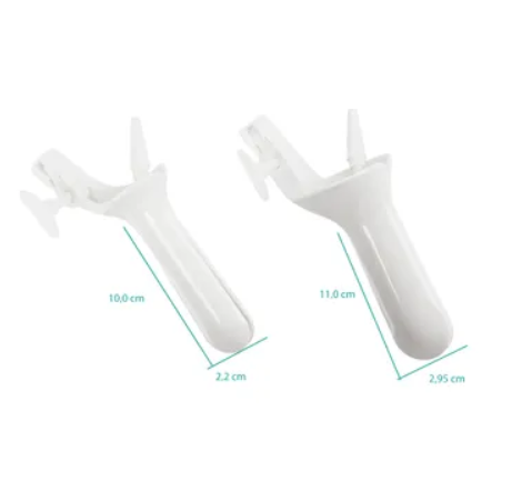 Instrumental atóxico, com parafuso (borboleta) acoplado e ducto com 8 níveis de diâmetro progressivo para conexão em borracha de aspiração aderido na valva oposta ao parafuso. Matéria prima valvas: poliestireno na cor branca Parafuso: poliacetal na cor branca Apresentação Comercial Espéculo P c/ ducto aspirador - 10 unid.